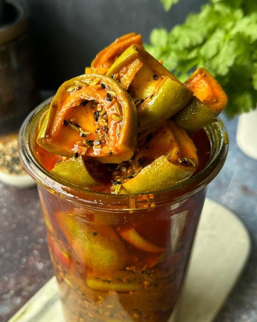 Keep the oil layer intact on the top until contents are finished. Avoid touching the pickle with wet or unclean hands.